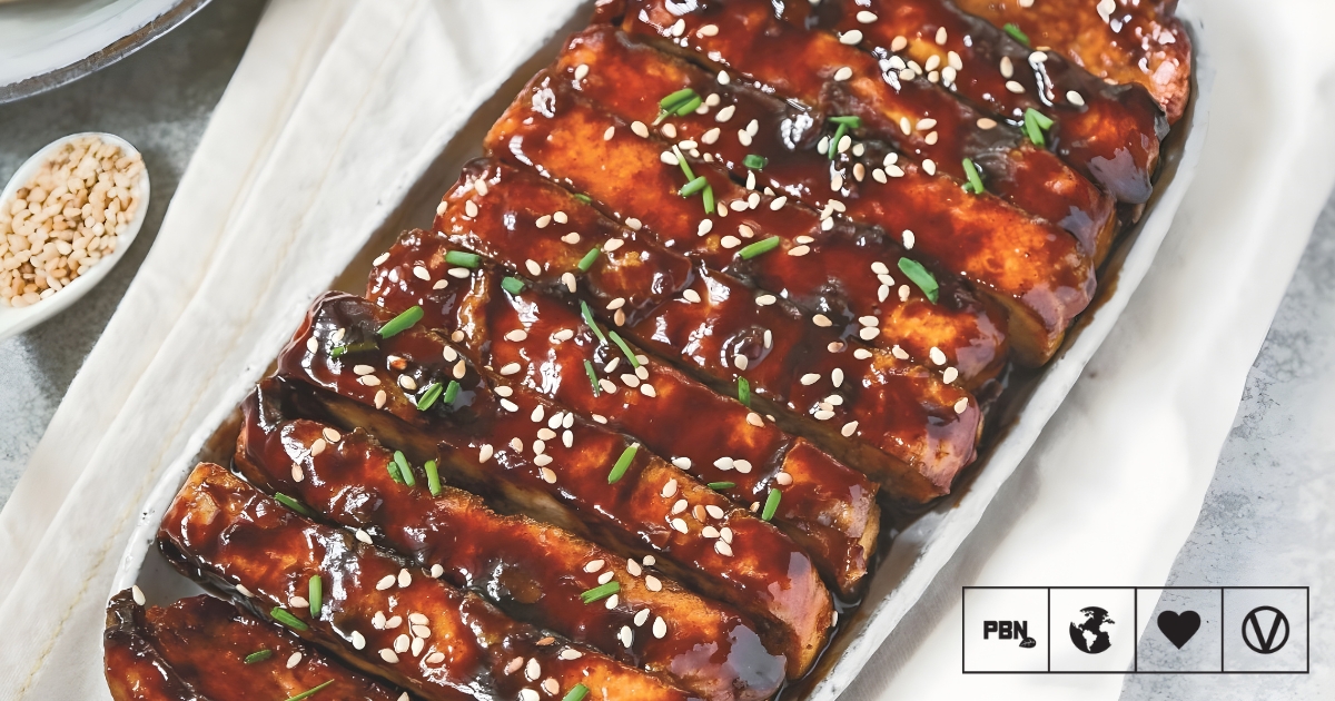a picture of vegan char siu tofu made with hoisin sauce and five spice