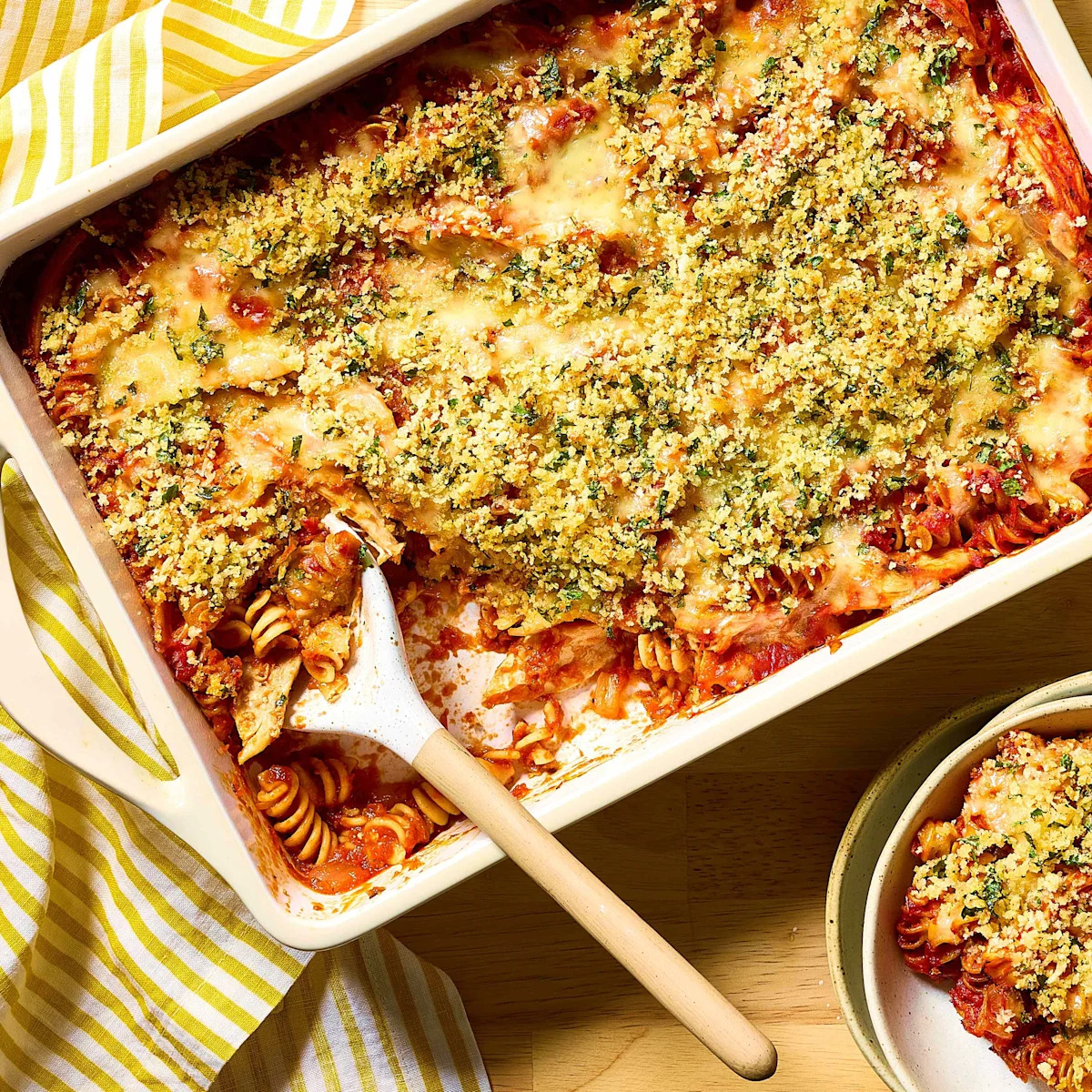 We took the best parts of chicken Parmesan—ooey-gooey cheese, crispy breadcrumbs and plenty of tomato sauce—and spun them into an easy family-friendly casserole.