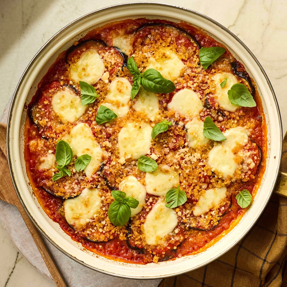 This eggplant Parmesan is a comforting version of the classic Italian dish that’s simple to make. Slices of eggplant are layered with marinara sauce and melted mozzarella and Parmesan cheeses. This method skips the deep-frying step, making it lighter without sacrificing flavor. It’s perfect as a vegetarian main course and pairs well with pasta, crusty bread or a crisp green salad.