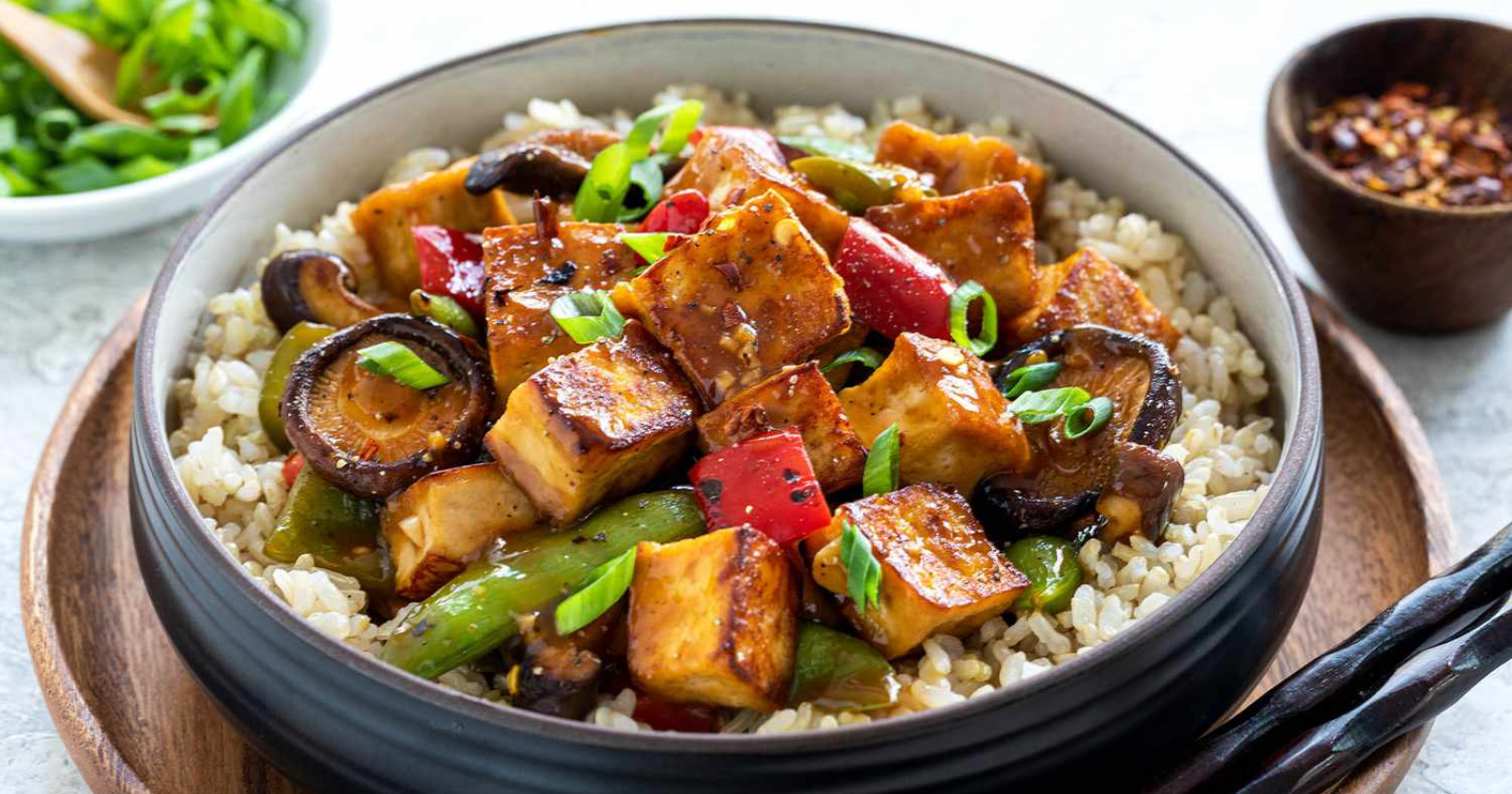 4) Marinated tofu and vegetable grain bowls
