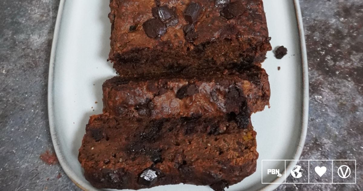 The cake uses everyday ingredients like flour, cacao, coconut sugar, soy milk, and chia seeds. The butternut adds natural moisture and helps bind the batter, making the cake feel indulgent with less oil. Chocolate chips mixed through and sprinkled on top melt into little pockets as it bakes, giving the cake a more chocolatey flavor.