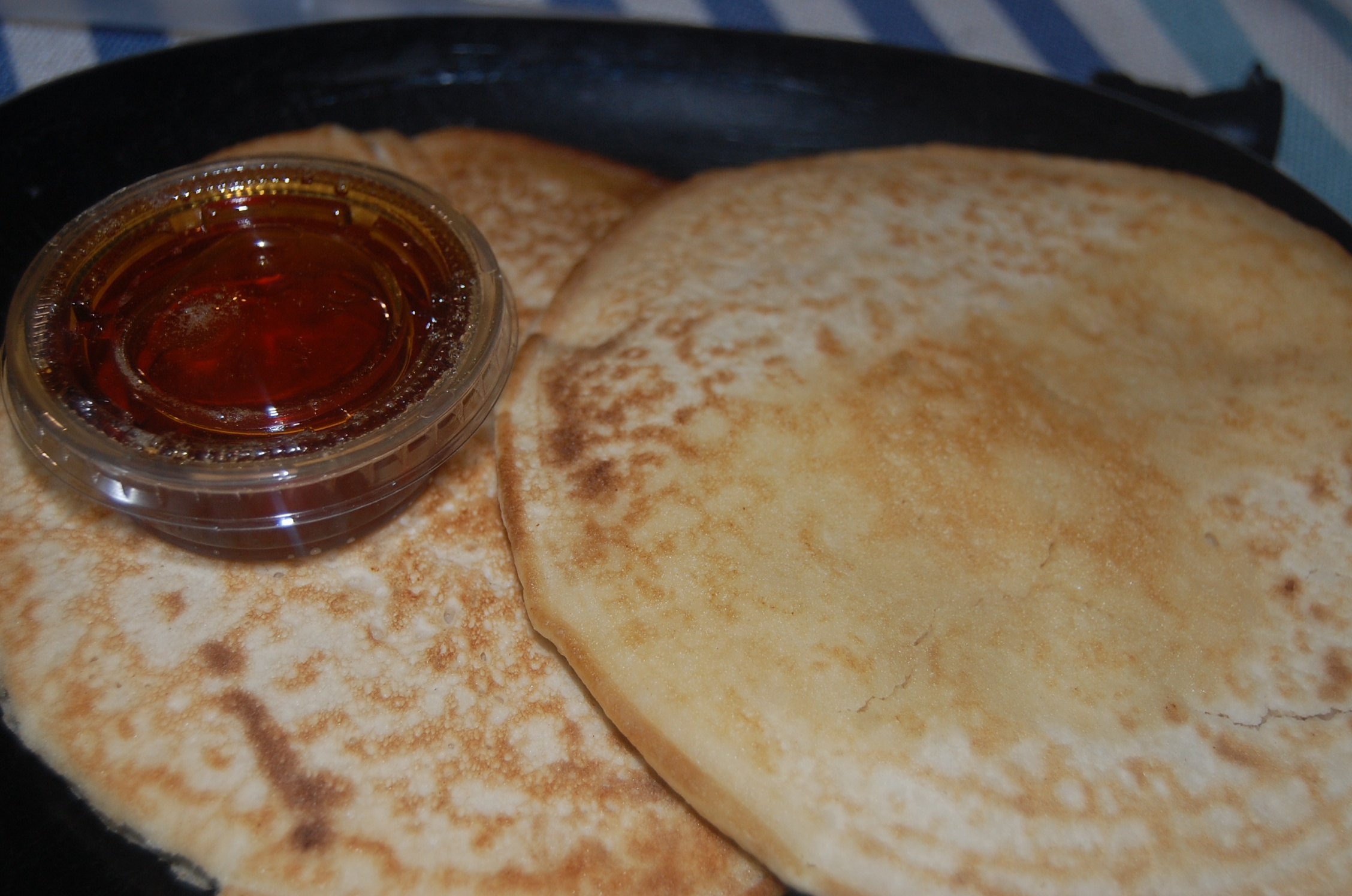 The syrup that comes with it is great, though we suggest that you pour it on carefully, gently and in small amounts. These pancakes soak it up like a sponge immediately, so it’s easy to over-pour. But add it well, and it enhances the buttermilk flavor of the pancake and takes them to another level.